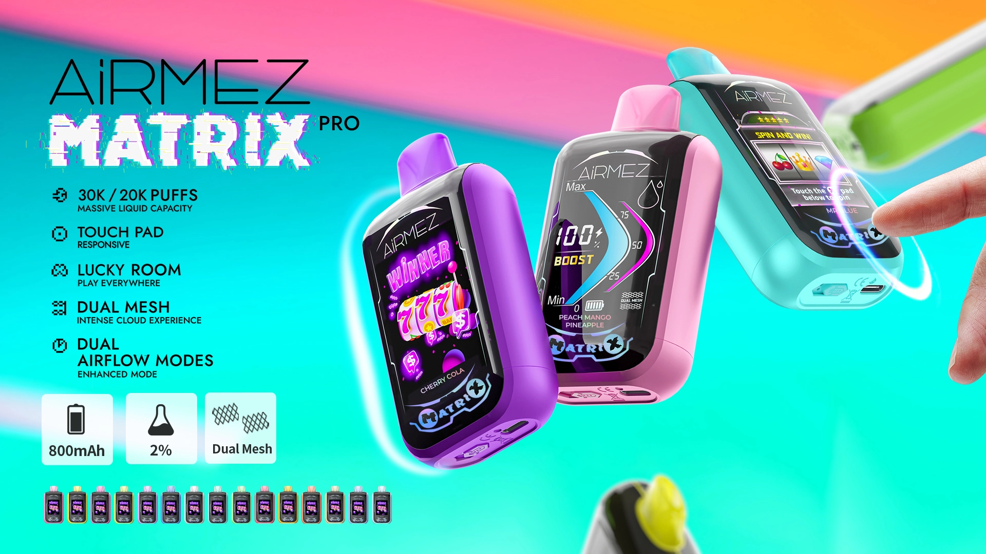 AiRMEZ MATRIX PRO—a sleek, compact vape that combines innovation, style, and interactive fun; Delivered from Germany