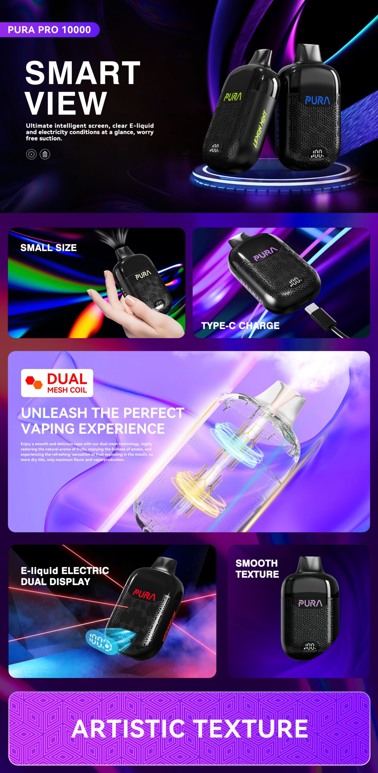 PURA Pro 10000 Puffs 2% 5% Nicotine Disposable Bulk Buy Vape Wholesale