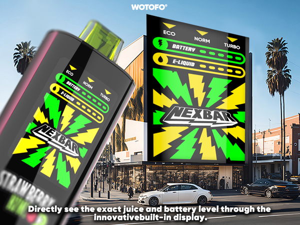Powered by WotofoLab’s dual nexMESH coil system, Wotofo nexBar 20K combines simultaneous and alternating heating for explosive Turbo Mode power and Eco/Norm Mode durability. Compared to a single MESH, the nexbar 20k delivers larger clouds and richer flavor. The Flavor Freshness feature reduces e-liquid burn rates, ensuring freshness for up to 20,000 puffs. With a large 1000mAh build-in battery, vapers can enjoy extended flavor satisfaction with our long-lasting battery.